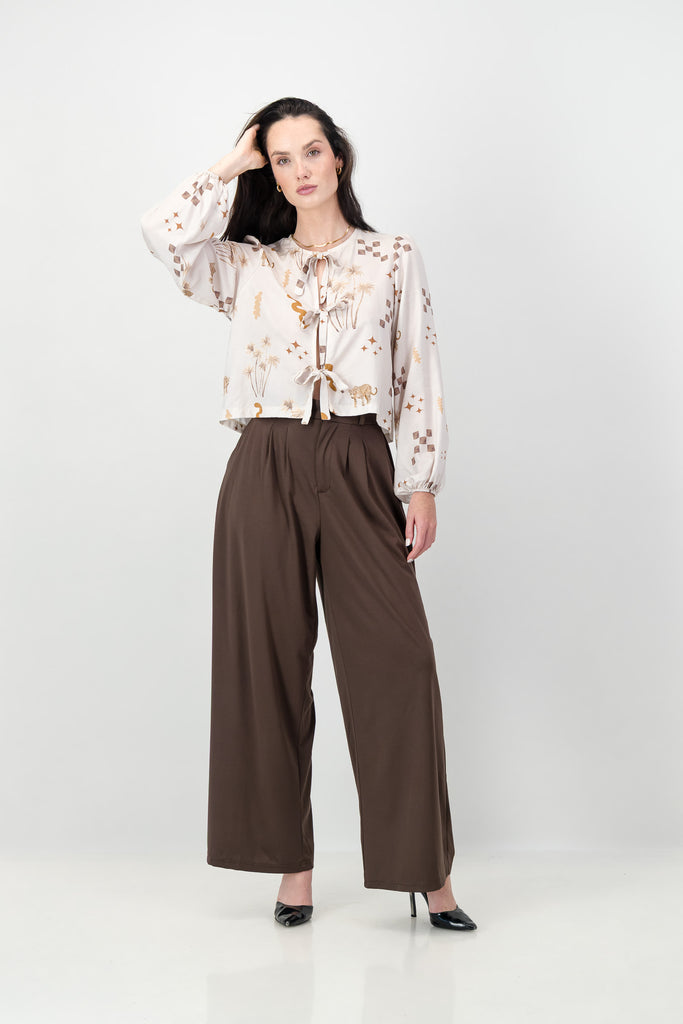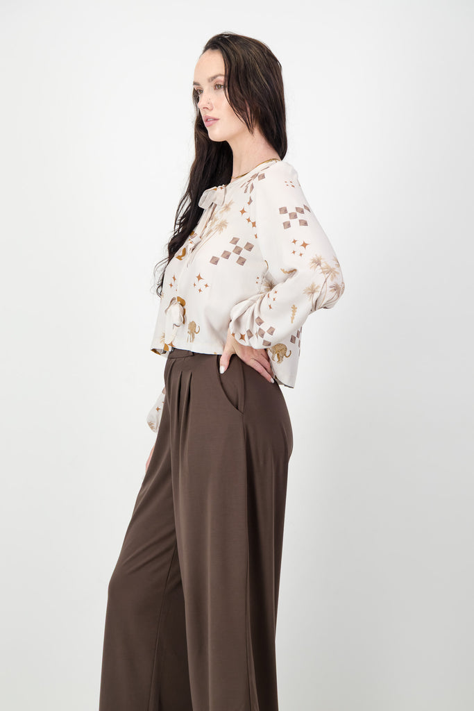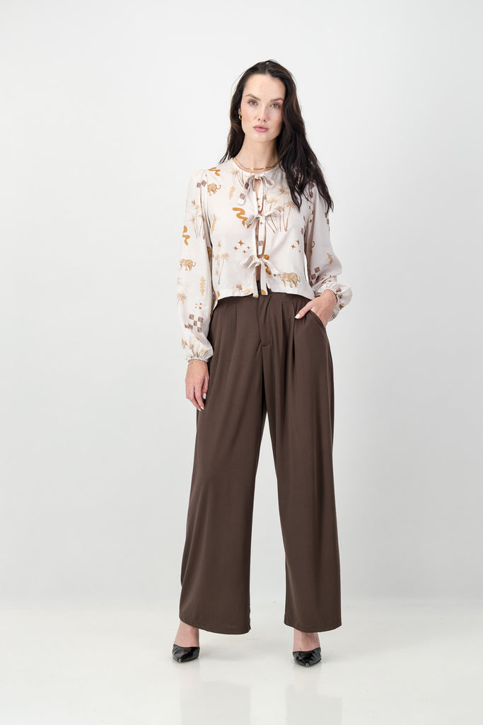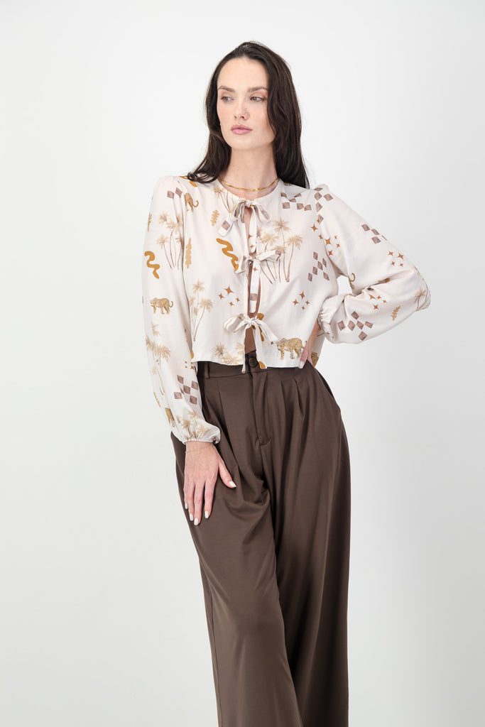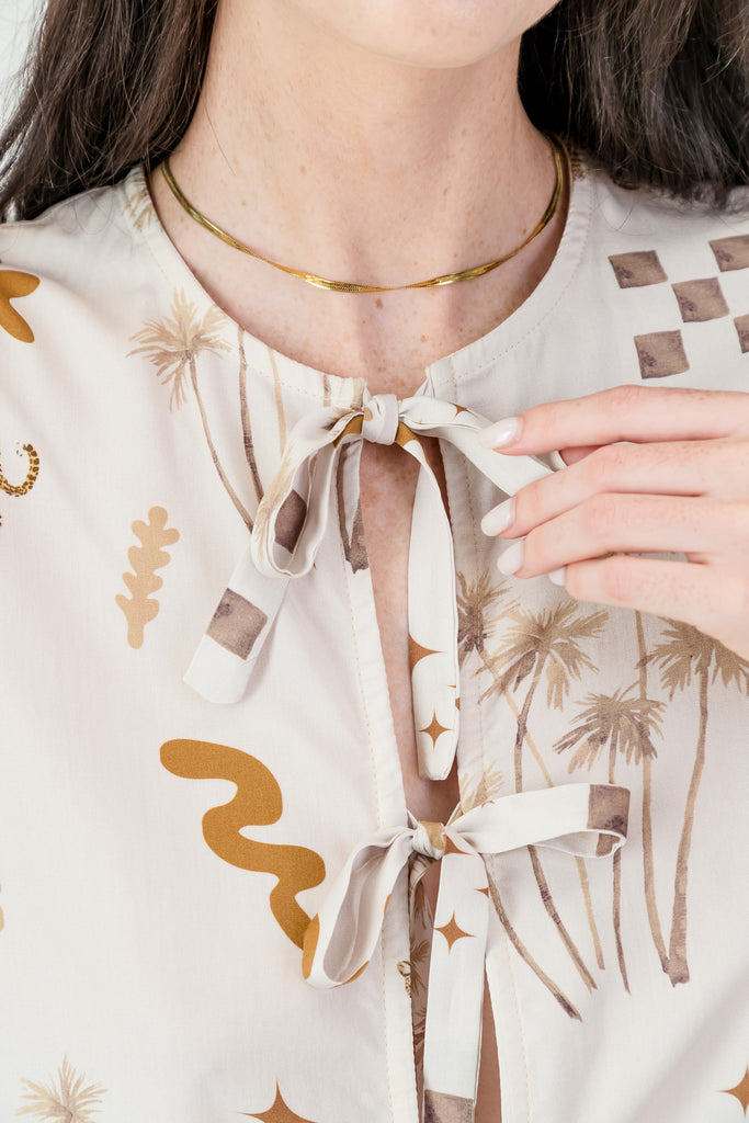 The Tie Front Blouse in Desert Safari is a wardrobe win. With its flowy fit, adjustable tie-front, and long sleeves with gathered cuffs, it’s easy to wear it your way. Dress it up, dress it down—either way, you’ll look fab with zero effort.