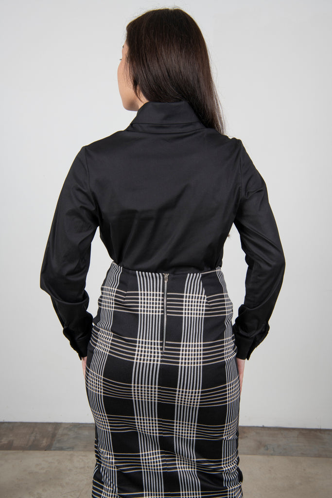 Double Collar Cotton Shirt - Black